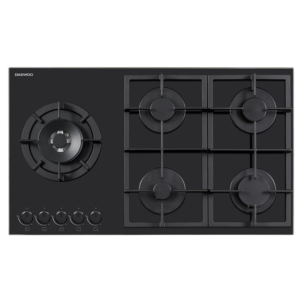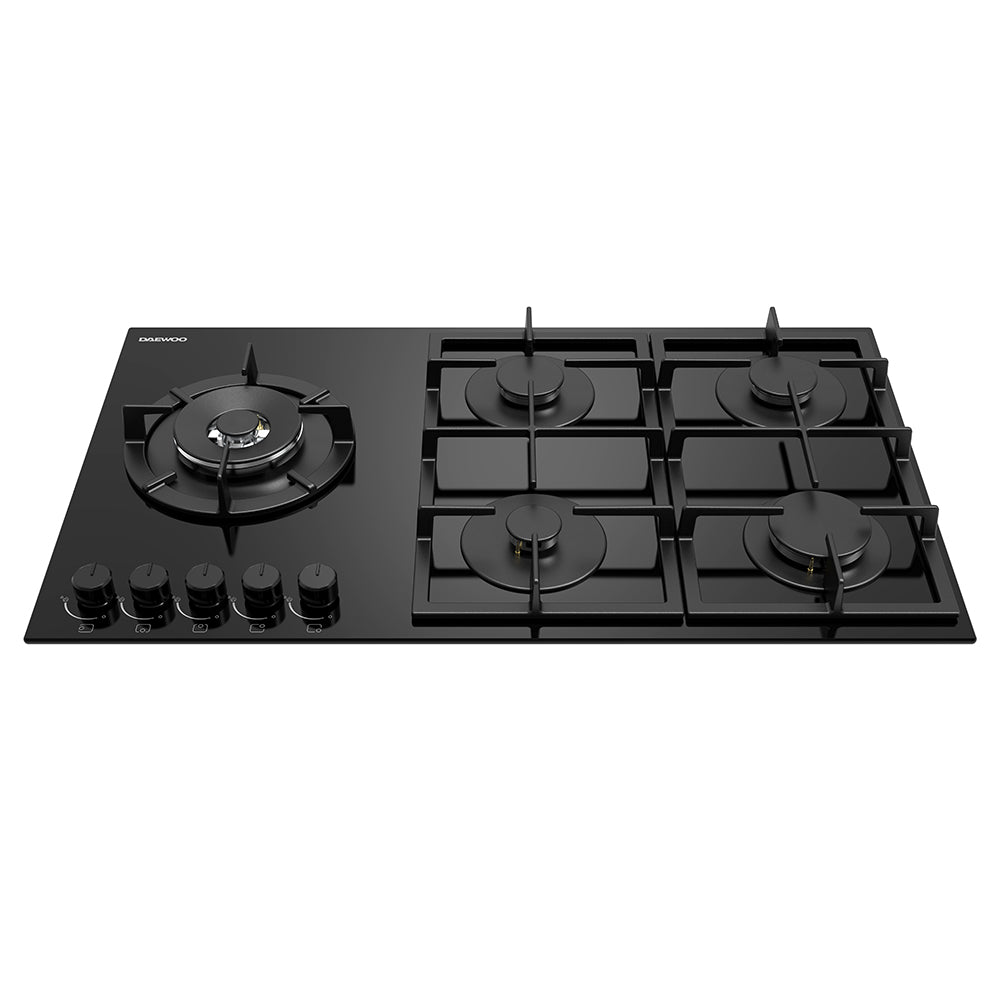Daewoo BH9GKF51BNH-FR Built-In 90cm Gas on Glass Hob, Knob Control
