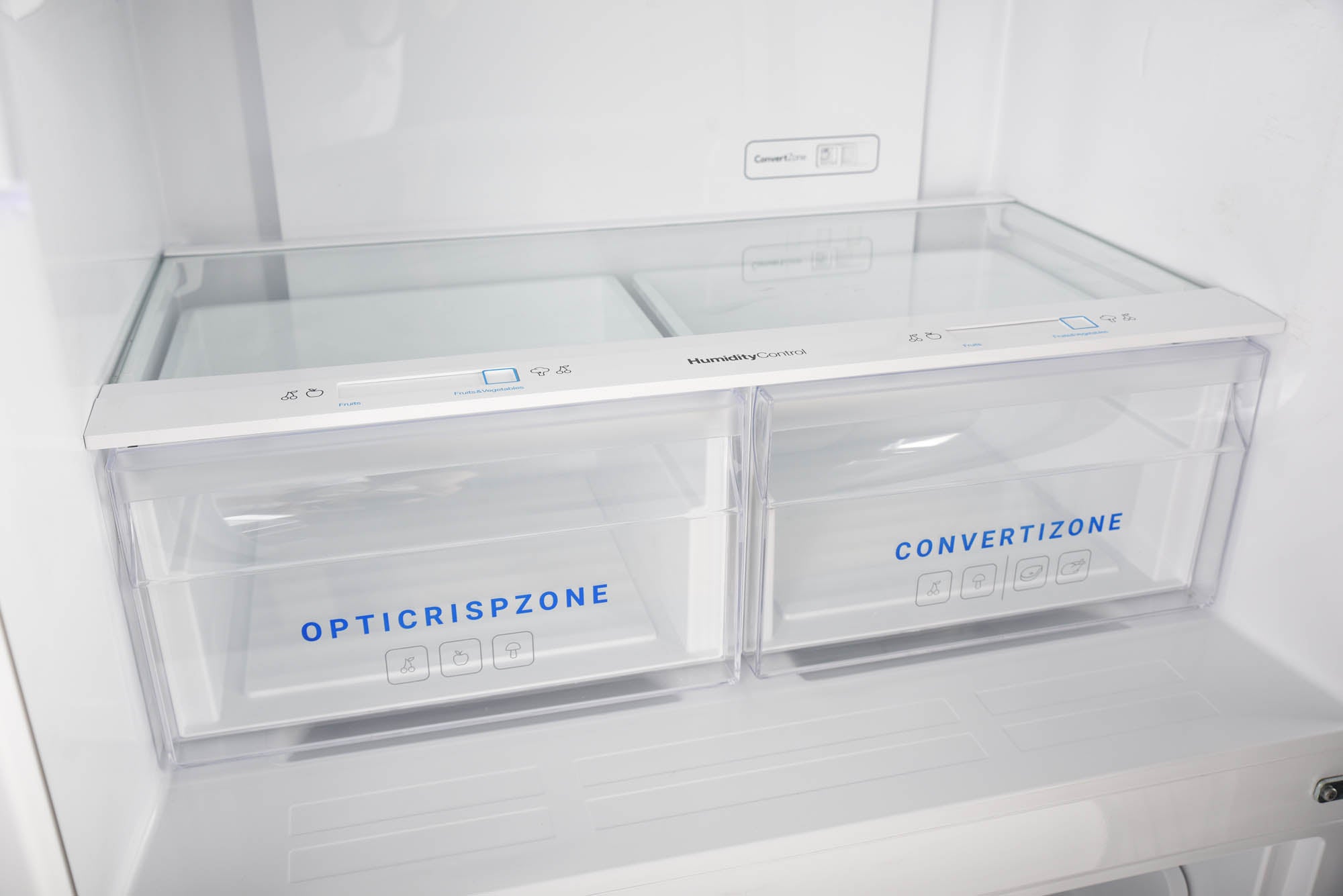 The Convert Zone drawer offers versatile storage by effortlessly switching between two functions. In the Opti-Crisp Zone, it creates the ideal environment for fruits and vegetables, keeping them fresh and crisp. When switched to the Dairy Zone, it maintains optimal conditions for meat, fish, and dairy, ensuring they stay at the perfect temperature to preserve their quality. This flexibility enhances storage efficiency, allowing you to customize the drawer to fit your needs.