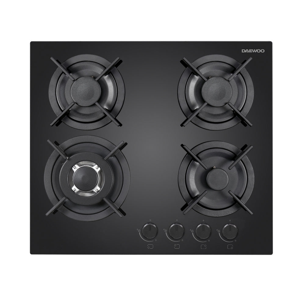 Daewoo H6G41M2IT Built-In 60cm Gas on Glass Hob, Knob Control