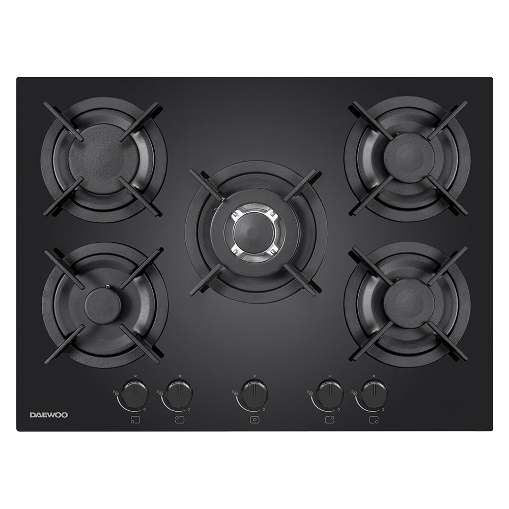 Daewoo H7G51H3IT Built-In 70cm Gas on Glass Hob, Knob Control